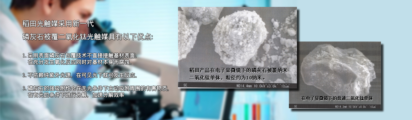 在認識【光觸媒】之前,要先了解什么是【觸媒】。觸媒是日語,翻譯成中文叫催化劑。催化劑是能在化學反應中加速反應速率,而本身在反應前后并不發(fā)生變化的物質(zhì)。光觸媒是一種以納米級二氧化鈦為代表的具有光催化功能的光半導體材料的總稱。它涂布于基材表面,在光線的作用下,產(chǎn)生強烈催化降解功能:能有效地降解空氣中有毒有害氣體;能有效殺滅多種細菌,并能將細菌或真菌釋放出的毒素分解及無害化處理;同時還具備除臭、抗污、凈化空氣等功能。 稻田光觸媒采用【磷灰石被覆納米二氧化鈦分子結構】,具有吸附、分解、去除、無毒化的特質(zhì)。表面磷灰石包覆技術不直接接觸基材表面,在充分發(fā)生氧化反應的同時對基材本身無腐蝕。其中的【磷灰石】成分,具有強大的吸附能力,可以隨時吸附空氣中的異味源、細菌、病毒等有害物質(zhì),再交由【二氧化鈦】在光源下進行分解反應,因此能夠24小時吸附、分解